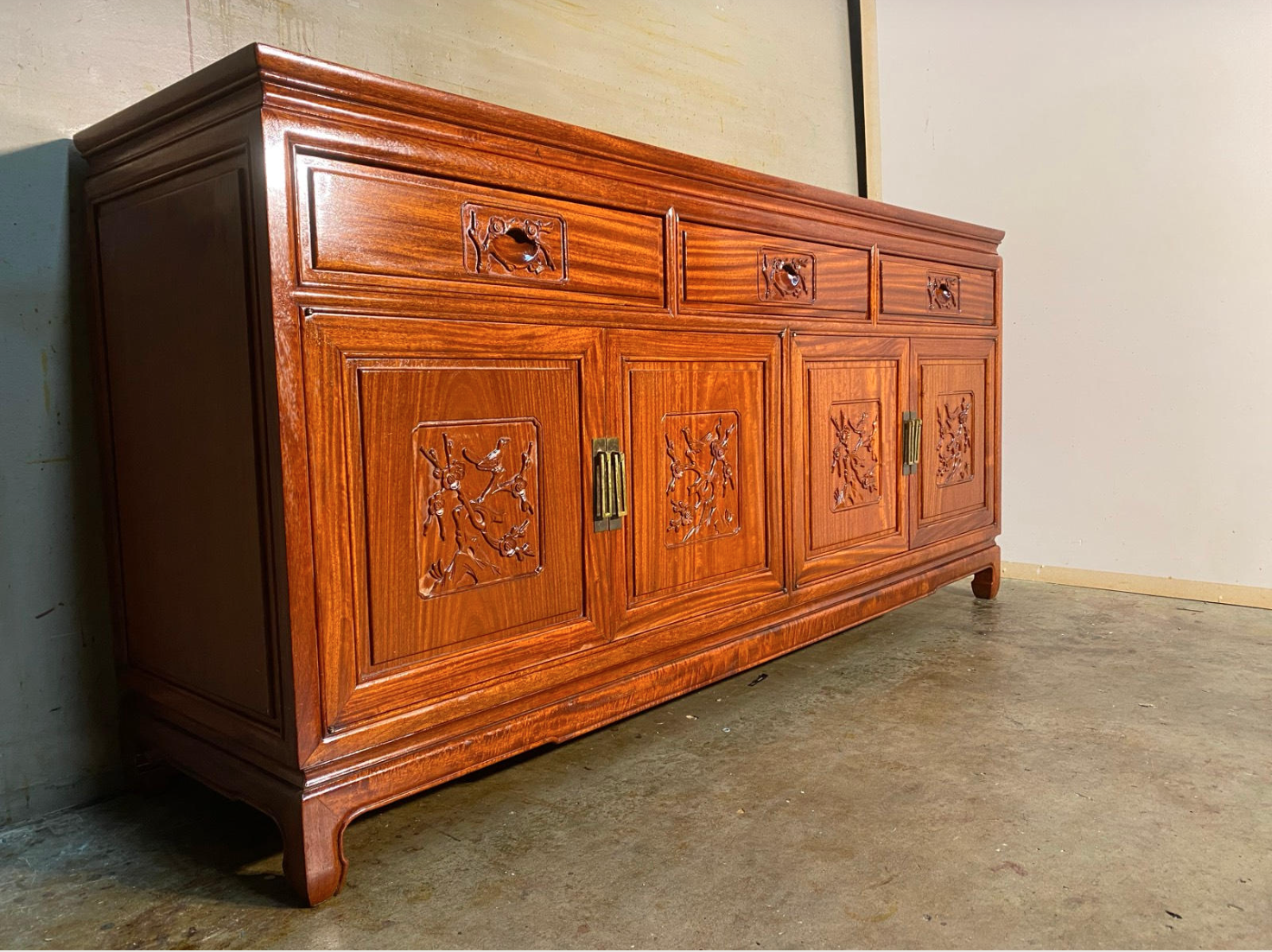 Perfect condition Chinese style solid rosewood buffet with 3 drawers
