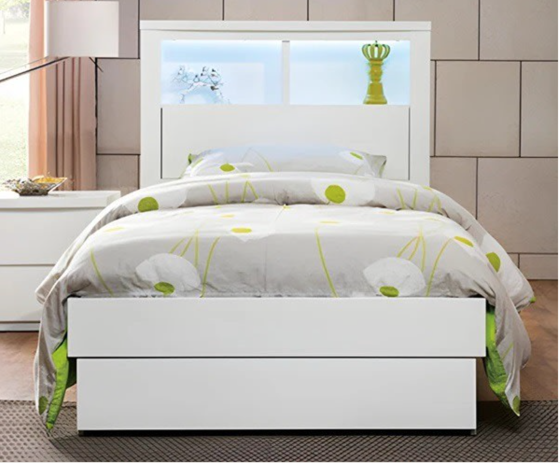 BRAND NEW KING SINGLE BALI GAS LIFT BED LIGHTS AND USB GLOSS WHITE