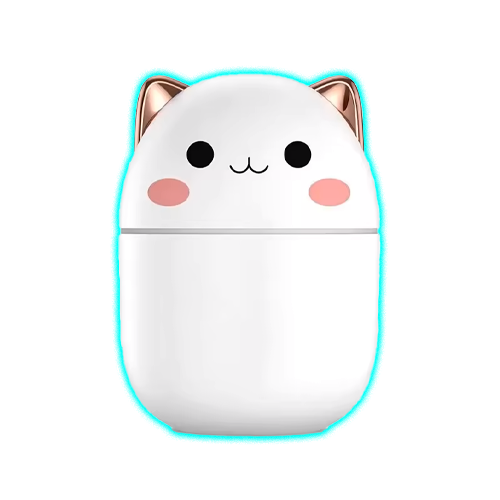 This delightful mini humidifier delivers moisturizing gentleness without disturbing noise, creating a quiet humidified environment ideal for sleep, work, and relaxation. The 250ML capacity provides hours of continuous misting with a single fill, while the ultrasonic technology produces virtually silent operation—perfect for light sleepers and noise-sensitive environments. The essential oil diffuser function allows you to add your favorite aromatherapy oils, transforming the humidifier into a dual-purpose wellness device that combines moisture and fragrance benefits. The cute kawaii design features an adorable cat-like character with expressive eyes and soft colors, making it an Instagram-worthy desk or nightstand accessory.